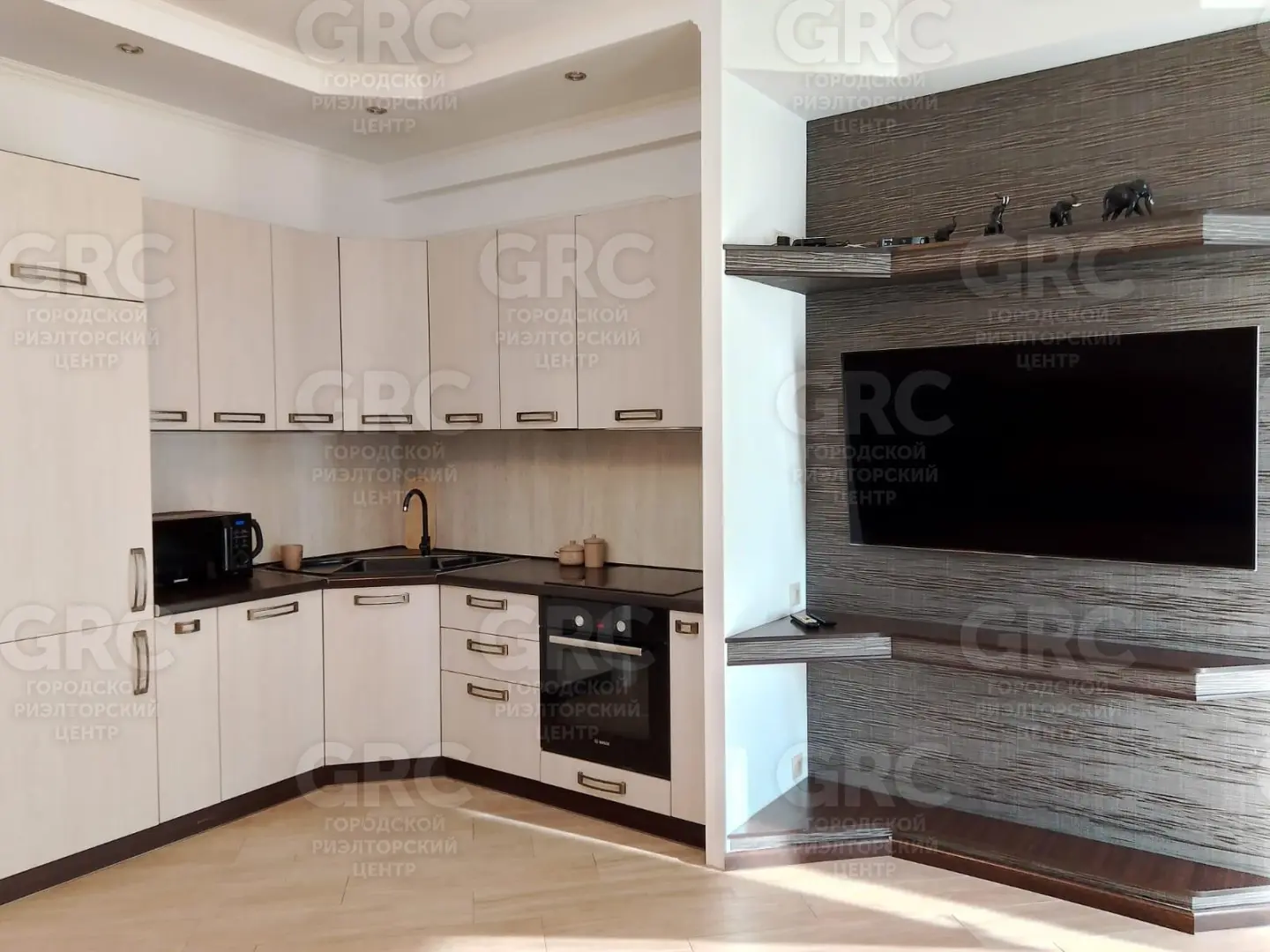 Квартира продается с мебелью и бытовой техникой Bosch, включая индукционную варочную панель, духовой шкаф, посудомоечную и стиральную машины. В дополнение к этому есть подсобное помещение (прачечная) и большой шкаф-купе для удобного хранения вещей.