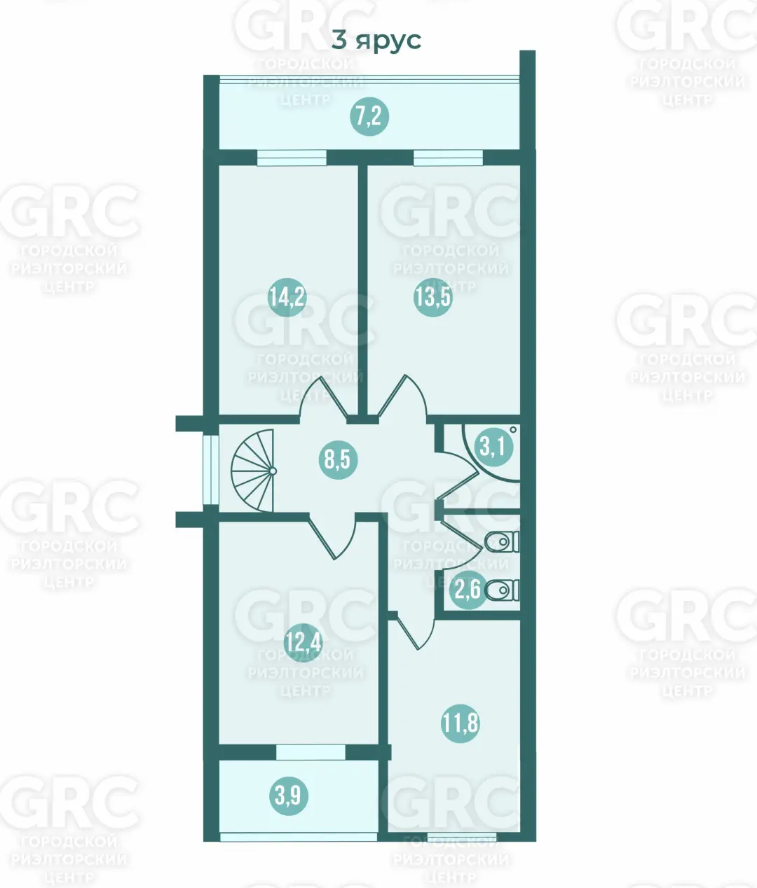 - общая приведенная площадь составляет 258.4 кв.м., жилая площадь 116.3 кв.м