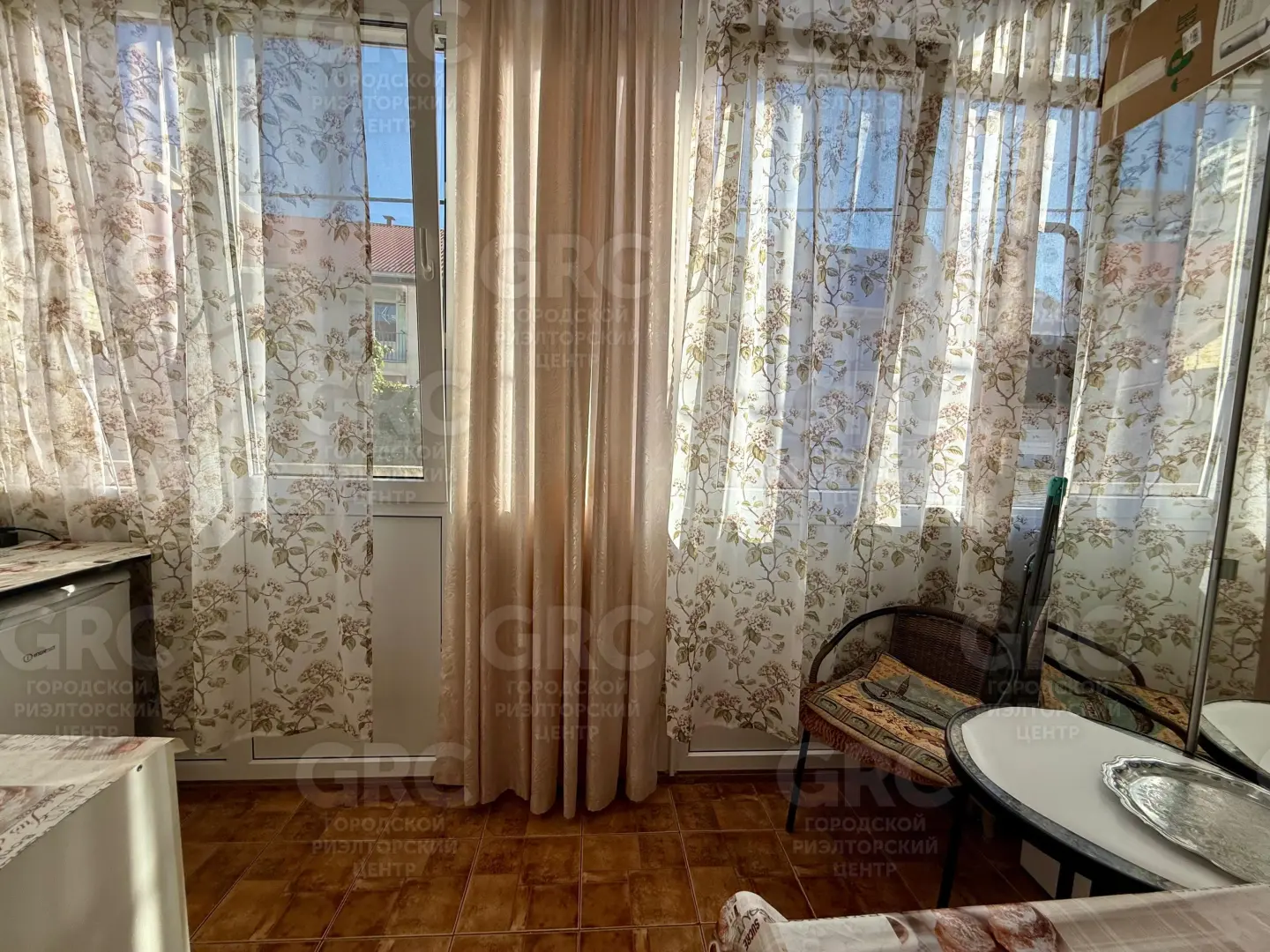Эта студия общей площадью с застекленной лоджией 20 кв.м, зонирована на прихожую, санузел, комнату и на лоджии обустроена кухня, расположенная всего в 300 м от галечного обустроенного пляжа.