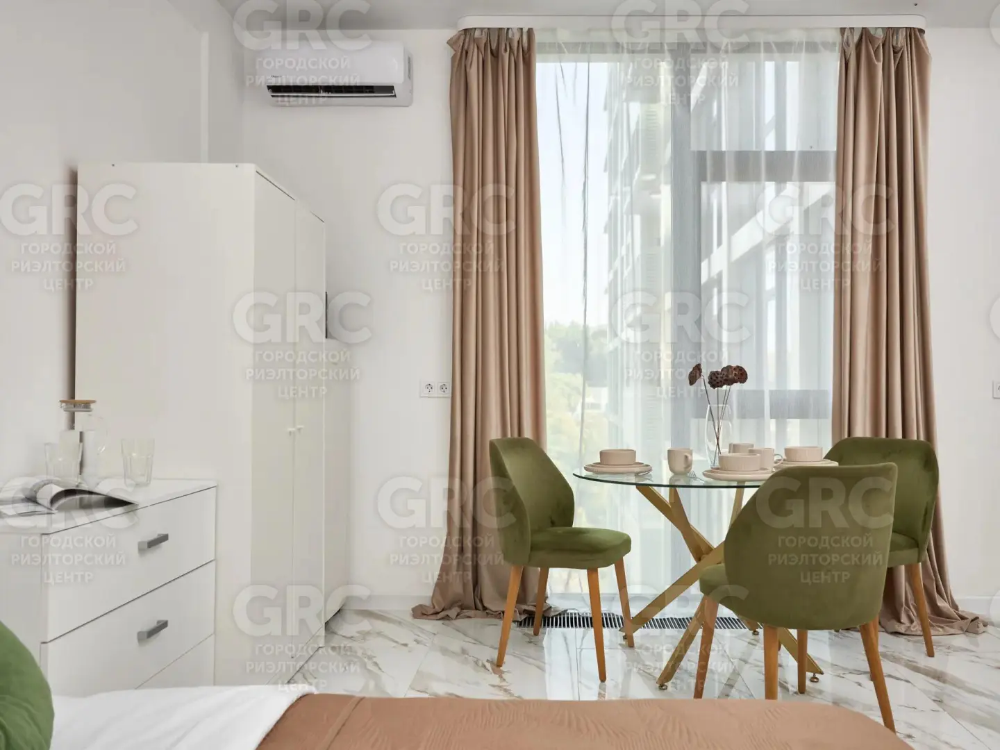 Площадь студии - 27,4 м². Выполнен качественный дизайнерский ремонт. Просторная студия полностью готова к заселению.