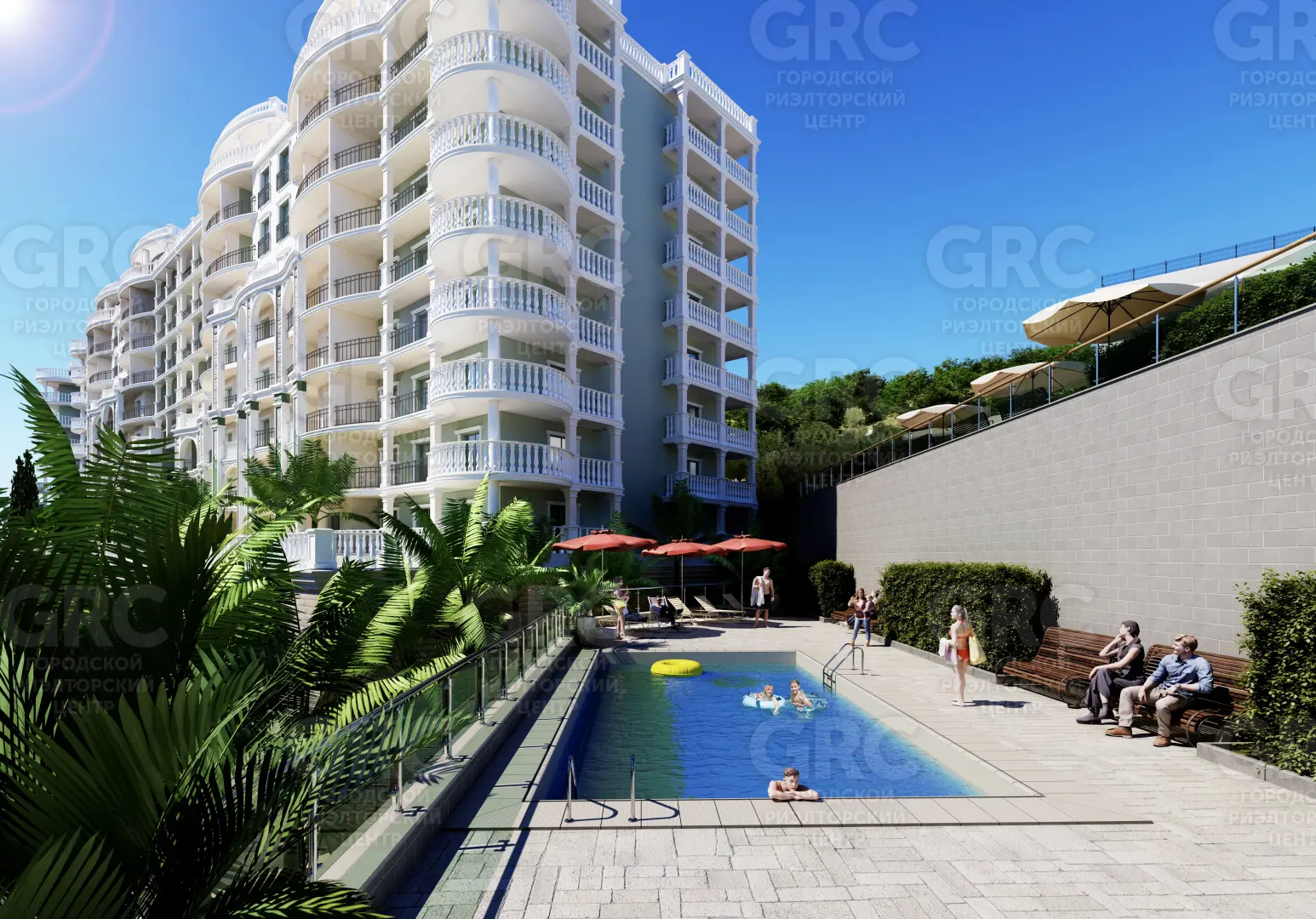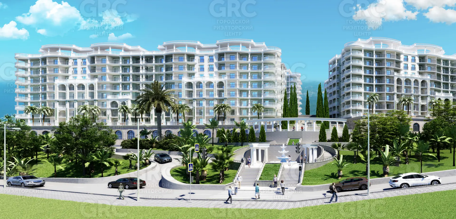Попадая на комплекс, Вы погружаетесь в атмосферу настоящего волшебства в стиле Французской Ривьеры. Фасады здания украшены барельефами и колоннами, которые дополнены элегантным и современным дизайном, а встретит гостей роскошная входная группа с ротондой, фонтаном и тропическими деревьями.