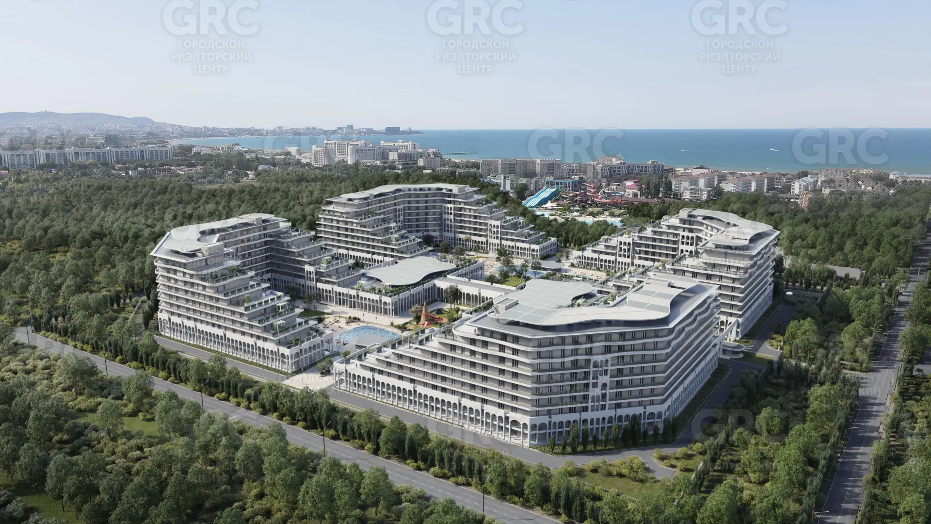 Этот современный отель - это не просто место для отдыха, а целый курортный комплекс премиум-класса. Архитектурный ансамбль состоит из четырёх элегантных 9-этажных зданий каскадной формы с подземным паркингом, уютного административного корпуса с кафе и рестораном, а также отдельного корпуса с просторной SPA-зоной, бассейнами, фитнес-центром и детской комнатой.