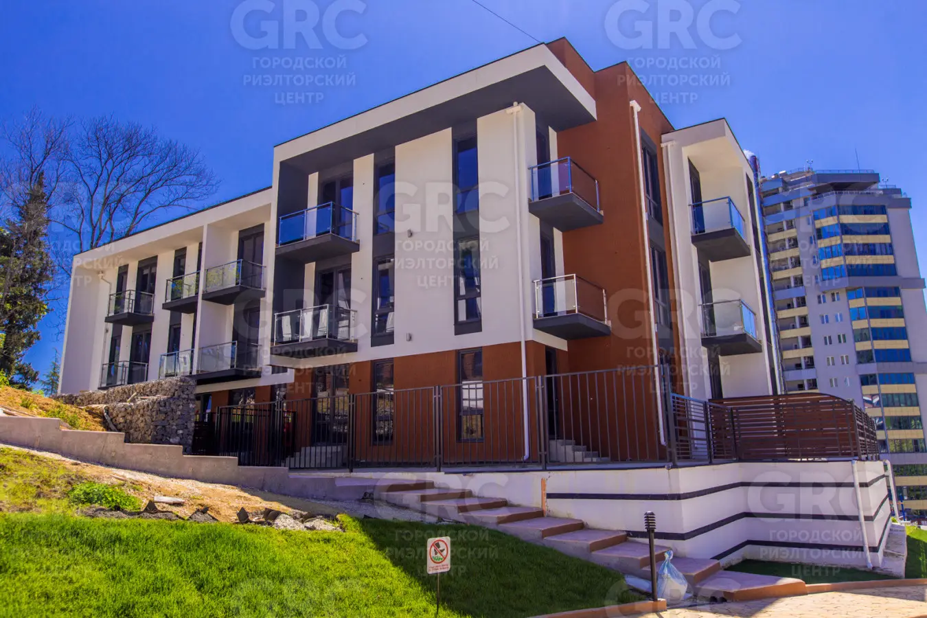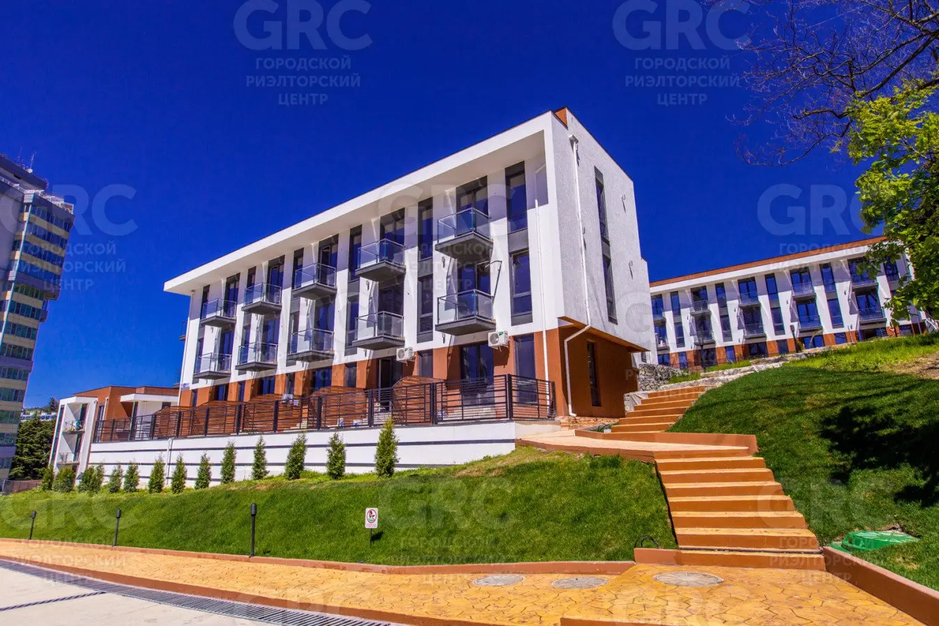 Все три дома выдержаны в единой архитектурно-стилевой концепции. В доме предусмотрено наличие квартир с индивидуальными открытыми террасами и зонами отдыха. Из окон квартир открываются панорамные виды на море и горы.