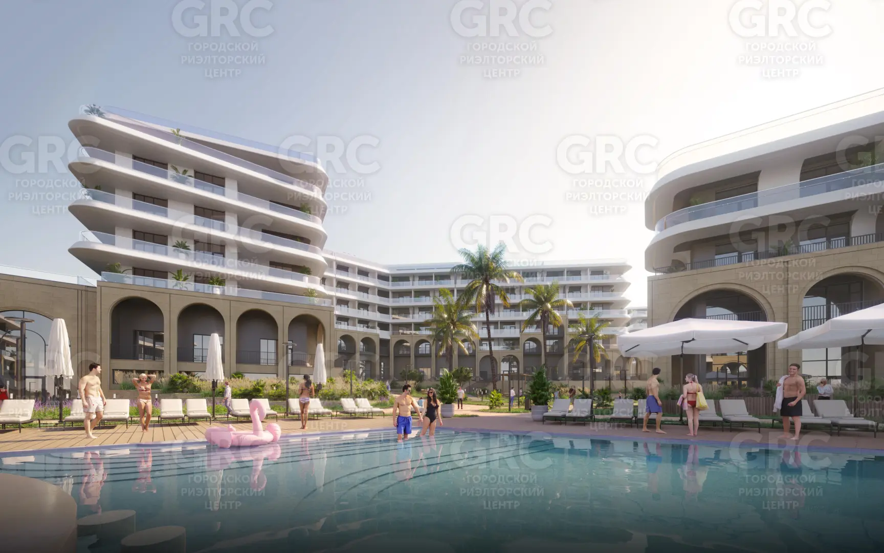 Для удобства гостей предусмотрены отдельные бассейны как для взрослых, так и для детей На пляжной береговой зоне раскинется большой открытый бассейн.