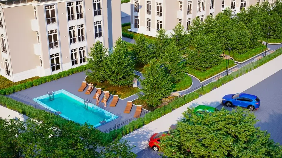 Расположен в Адлерском районе, по ул. Зеленая, дома клубного типа комфорт класса с центральными коммуникациями (свет, вода, канализация, газ). Закрытая благоустроенная территория, общей площадью 4 га, включает в себя шлагбаум, детскую площадку, бассейн, парковку. Живописный панорамный вид на горы, благоприятная экологическая обстановка и удобное месторасположение: Море - 11 км., Центр Сочи - 35 км., Центр Адлера - 12 км., Аэропорт - 7 км., Олимпийский парк - 7 км., Красная Поляна - 34 км. От жилого комплекса планируется трансфер до моря. Магазины, аптеки, салоны красоты, продуктовые рынки находятся в непосредственной близости к жилому комплексу. По желанию покупателя Застройщик осуществляет ремонт, используя свои дизайнерские решения, а также по дизайну Покупателя. В жилом комплексе будет осуществляться доверительное управление. Владельцы смогут сдавать свои апартаменты на выгодных условиях через управляющую компанию.